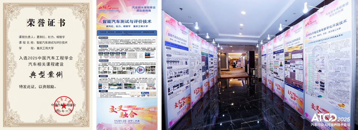 近日,机械工程学院教学团队开发的“智能汽车测试与评价技术”课程成功入选2025年中国汽车工程学会课程建设典型案例,并于11月22日在“全国汽车行业人才培养院长论坛”上进行现场展示,标志着学院在深化产教融合、推进新工科建设方面取得重要突破。