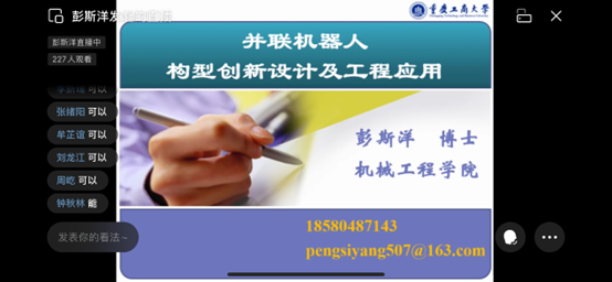 讲座注重理论与实践结合,强化创新思维培养。彭斯洋老师以“并联机器人构型创新设计及工程应用”为例,展示机构创新的实现路径;张豪老师通过“超级电容器的制备及其性能与应用研究”,呈现新能源技术的广阔前景;黄美娜老师探讨“绿色未来携手同行推动制造业低碳绿色转型之路”,引导学生思考工程技术的社会责任;王强老师解析“低空经济下重载无人机关键技术及应用”,展望新兴产业发展机遇。