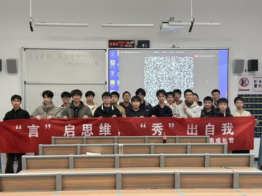 2026年3月20日,下午19点在宏智楼103教室,“言”起思维,“秀”出自我辩证表达素质成长营成功举办了一场分享会,旨在锤炼同学们辩证思维能力,提升语言表达与逻辑思辨素养,助力青年学子突破表达瓶颈、展现自我风采。本次活动以辩论思维培育为核心,邀请机械工程学院辩论队多位优秀成员作为特邀分享者登台,用亲身经历讲述思辨成长之路,为现场带来一场思想与表达的盛宴。