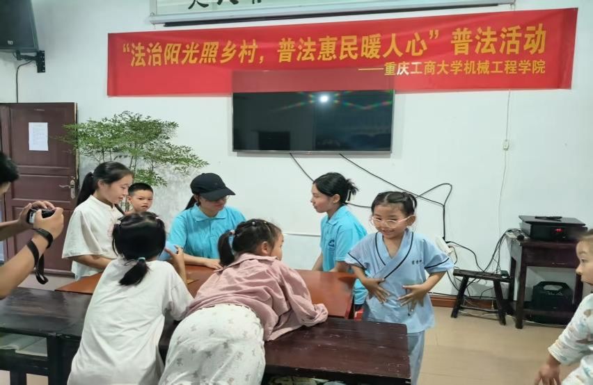 为了增强少年儿童安全防诈骗意识,提高防诈骗能力,7月16日机械工程学“机承服务,械递温情”社会实践团联合桑柘镇杨家村李家社区夏令营志愿老师,以及社区负责人,在夏令营活动中为小朋友们带来了一场别有用心的“防诈骗情景剧”表演,通过生动有趣的表演,向小朋友们普及防刷单诈骗,保健品推销诈骗以及电信诈骗等常见骗局,帮助他们树立防诈骗安全意识。
