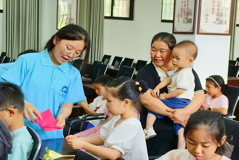 为切实缓解社区双职工家庭暑期“看护难”问题,将传统艺术教育融入公益托管服务,7月17日,机械工程学院“爱心托管护成长,机械赋能筑童梦”社会实践团联合重庆市北碚区龙门社区成功开展“童心折纸”公益课堂,以玉兰花折纸为载体,为社区儿童带来兼具趣味性与教育性的艺术启蒙体验。