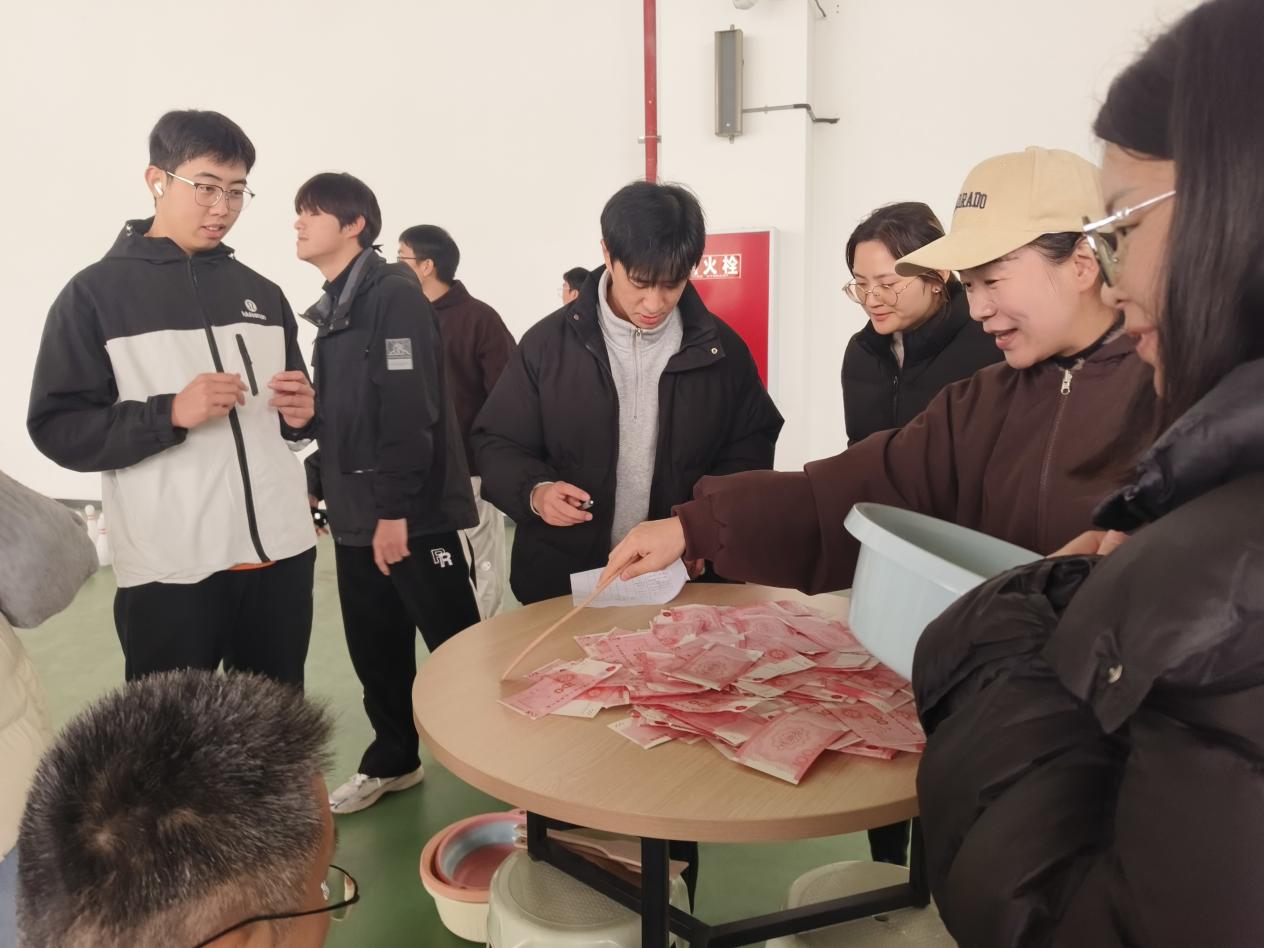 铲 “钱” 游戏环节更是趣味满格,参赛者蒙上双眼后,需在限定时间内用铲子铲取桌面的仿制纸币。蒙眼的选手们在队友的轻声指引下小心翼翼地摸索操作,时而精准铲起 “钱币” 收获阵阵欢呼,时而与目标擦肩而过引得全场惋惜,每一轮的起落都紧紧牵动着在场所有人的目光,整个赛场都被紧张刺激又不失欢乐的氛围填满。