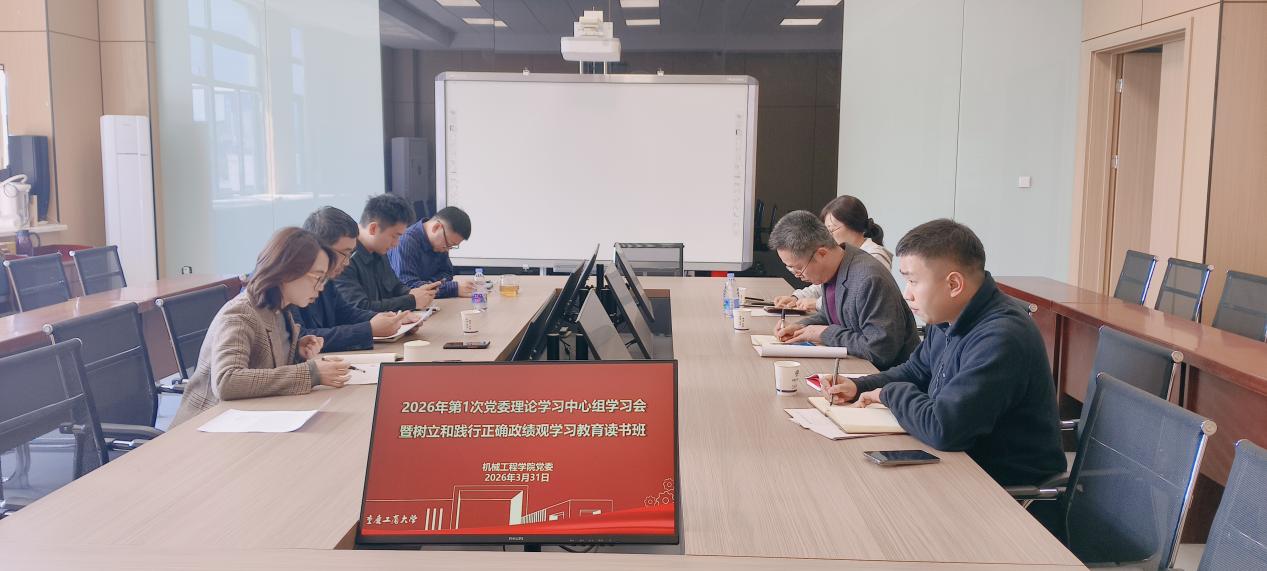 3月31日,机械工程学院党委理论学习中心组2026年第1次集中学习会暨树立和践行正确政绩观学习教育读书班在卓智楼510会议室举行。学院党委书记杨娟主持会议并讲话,学院全体党委理论学习中心组成员参加。