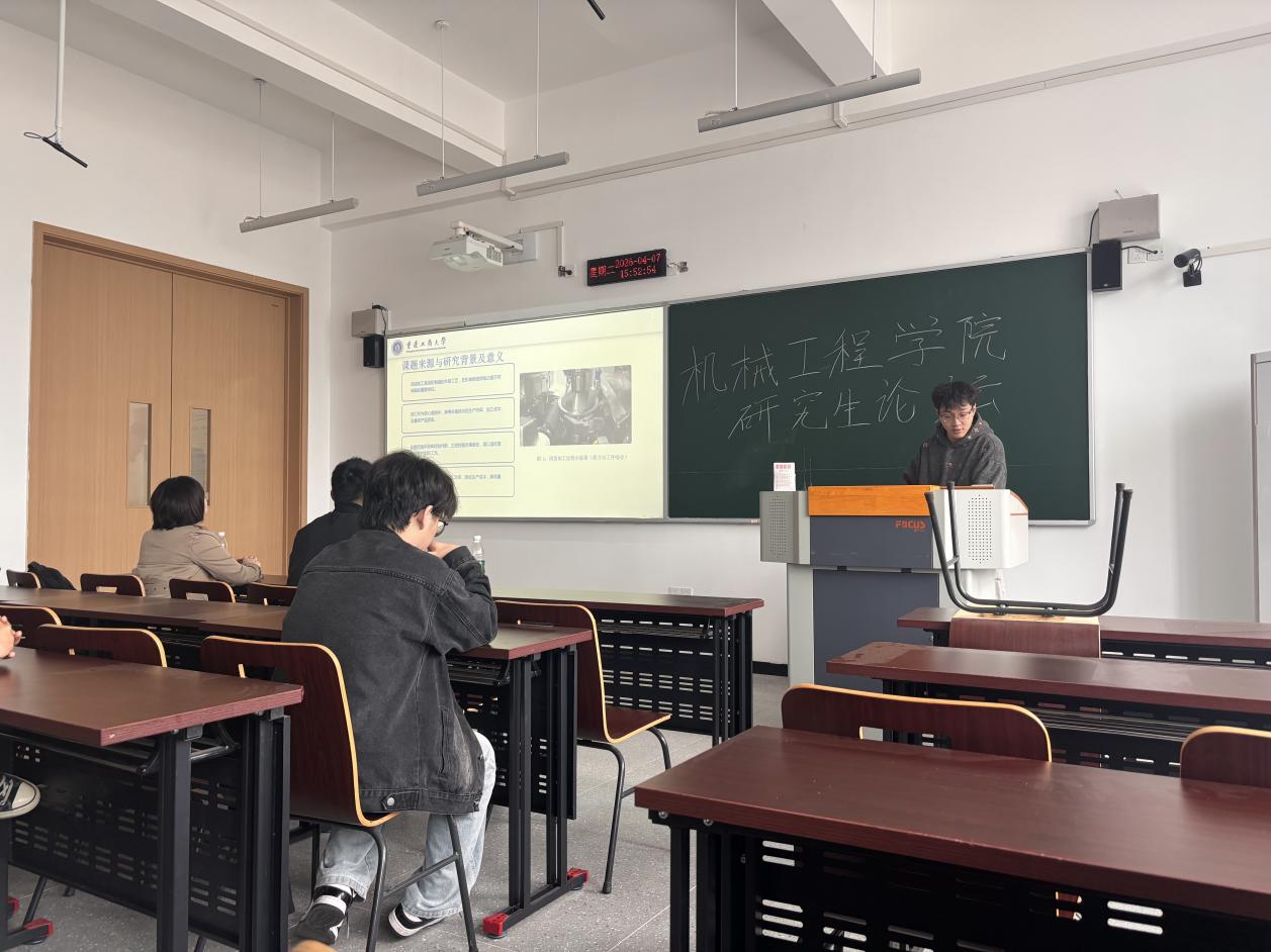 为深入贯彻落实学校研究生创新能力培养要求,搭建高水平学术交流平台,营造浓厚科研创新氛围,切实提升研究生学术素养与科研实践能力,2025 年 4 月 7 日 14:00—18:00,重庆工商大学机械工程学院第二十二届研究生学术论坛在7 号楼 423 会议室顺利举行。本次论坛由姜柏萍同学主持,学院共计15 名研究生齐聚一堂,围绕机械制造、激光表面强化、智能控制、新能源装备等领域开展学术汇报与深度研讨。论坛特邀张会焱老师和张威老师担任点评嘉宾,全程指导研讨交流,整场论坛议程紧凑、内容充实、研讨热烈,取得圆满成功。