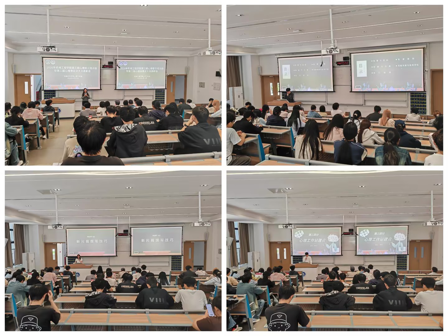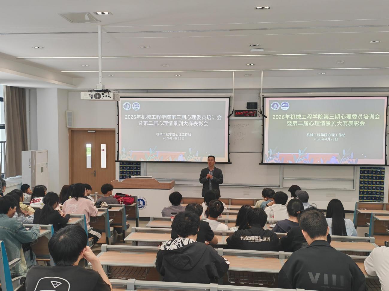 4月23日,为进一步加强学院心理健康教育工作,提升心理委员的专业素养与服务能力,表彰在第二届心理情景剧大赛中表现突出的优秀个人与作品,机械工程学院心理工作站在宏智楼109教室举办了第三期心理委员培训暨第二届心理情景剧大赛表彰会。学院党委副书记陈春洁、心理专项老师顾咸霜、心理工作站全体干部及心理委员、大赛获奖者共同与会。