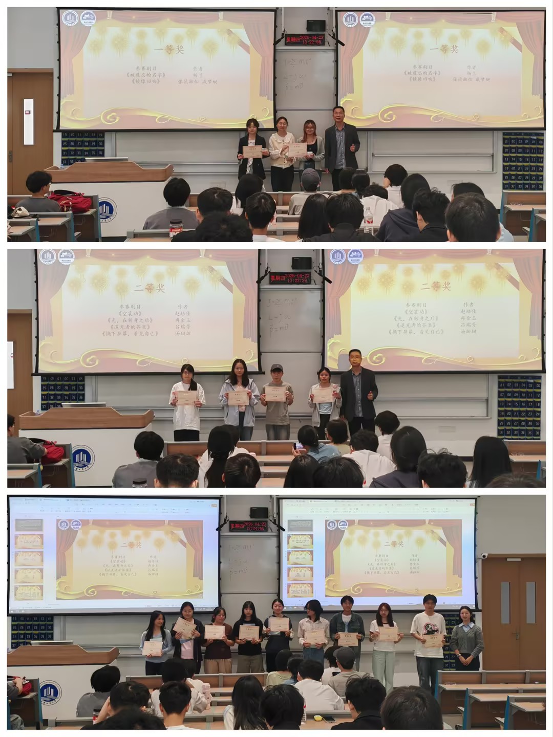 随后,大会进入表彰环节。陈春洁副书记与顾咸霜老师分别为荣获一二三等奖的同学颁发证书与奖品,并与获奖同学亲切合影留念。此次表彰既是对参赛同学创作成果的充分肯定,也是对全体同学关注心理健康、积极参与校园心理文化活动的鼓励与号召。